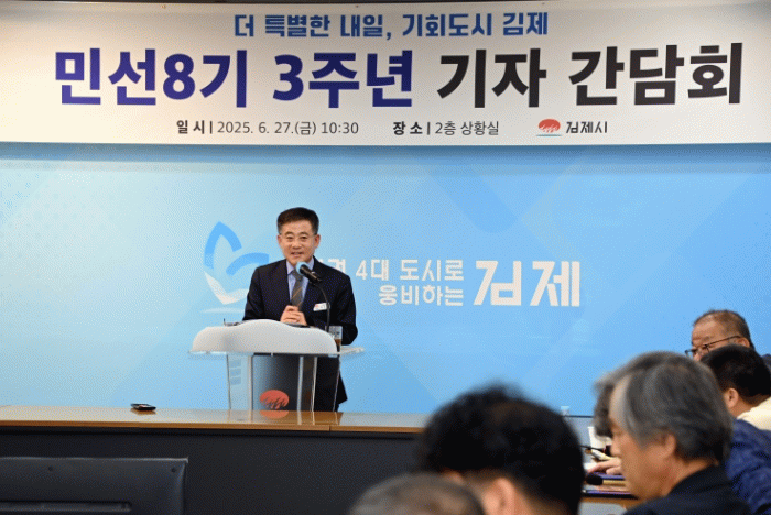 27일 김제시(시장 정성주)에 따르면 이날 시청 상황실에서 민선8기 3주년 기자회견을 열었다.