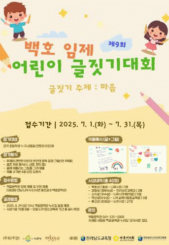 참가 희망자는 4절 도화지에 글과 그림을 작성해 백호문학관에 직접 제출하거나 우편으로 접수하면 된다.