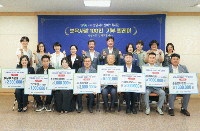 정인화 광양시장은 “이번 기부릴레이에 보내주신 많은 분의 따뜻한 마음에 깊이 감사드린다. 이러한 소중한 관심과 참여가 영유아의 건강한 성장과 보육 환경 개선에 큰 힘이 된다. 지역사회가 함께하는 긍정적 변화가 계속 이어지길 바란다”고 말했다.