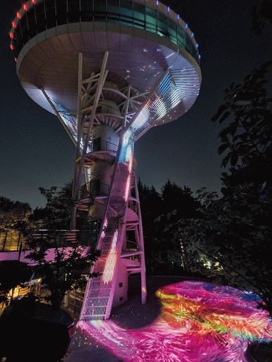 전망대에서 이어지는 ‘사직 빛의 숲’은 사직공원 내 산책로 830m 구간을 다양한 미디어아트 작품으로 꾸민 미디어아트 기반 야간 콘텐츠다. ‘사람들의 소원이 은하수가 돼 내려온다’는 콘셉트로 구성돼 자연 속 감성 체험과 예술적 몰입감을 함께 제공한다.