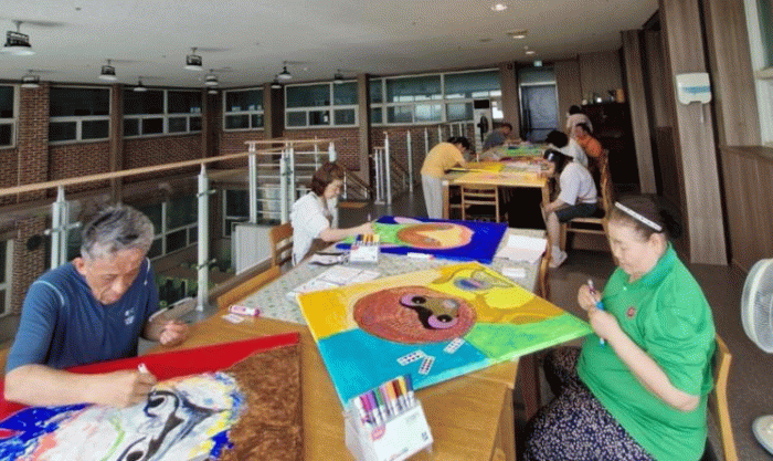 현재 ‘달팽이공방’은 관내 장애인 평생교육기관 5곳에 전문 강사를 파견해 미술교육 프로그램을 운영하고 있으며, 40여 명의 발달장애인이 참여중이다.