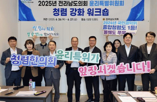 이규현 위원장은 “이번 워크숍은 윤리특위의 역할과 책임을 다시금 되새기는 뜻깊은 계기였다”며, “전라남도의회가 청렴도 1등급이라는 성과를 달성할 수 있었던 것은 의원님 한분 한분 모두가 윤리 의식을 높이기 위해 지속적으로 노력한 결과”라고 밝혔다.