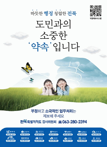 김진철 전북자치도 감사위원장은 “청렴은 공직자의 기본이자 도민 신뢰를 얻는 첫걸음”이라며, “이번 홍보기간을 통해 도민과 공직사회 간의 청렴 공감대를 확대하고, 실질적인 참여를 이끌어내는 계기로 만들겠다”고 밝혔다.