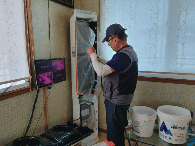 작업은 에어컨 필터를 고압 세척기로 세정하는 등 청소·점검이 이뤄지고 있고, 냉방 효율 향상과 실내 공기질 개선도 병행되고 있다.