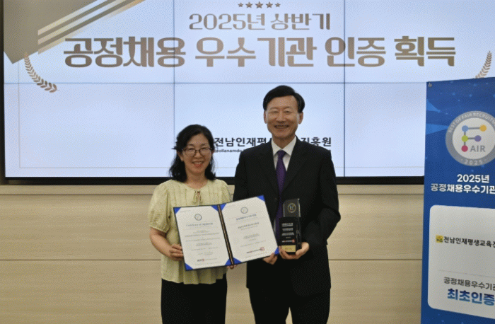 전남인재평생교육원은 앞으로도 공정 채용 문화 확산을 위해 외부 면접위원 사전 교육, 신규 입사자 만족도 증진 등 인사 제도 개선을 지속 추진해 투명하고 신뢰받는 채용문화 정착에 힘쓸 계획이다.