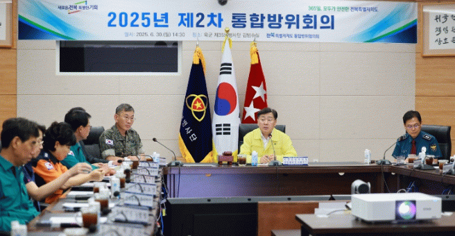이날 회의에는 김광석 35사단장, 김철문 전북경찰청장, 김성준 전북지방병무청장을 비롯해 전북자치도 통합방위협의회 위원 및 관계자 30여 명이 참석, 도민의 생명과 재산을 지키기 위한 민·관·군·경·소방 간 통합방위태세를 점검했다.