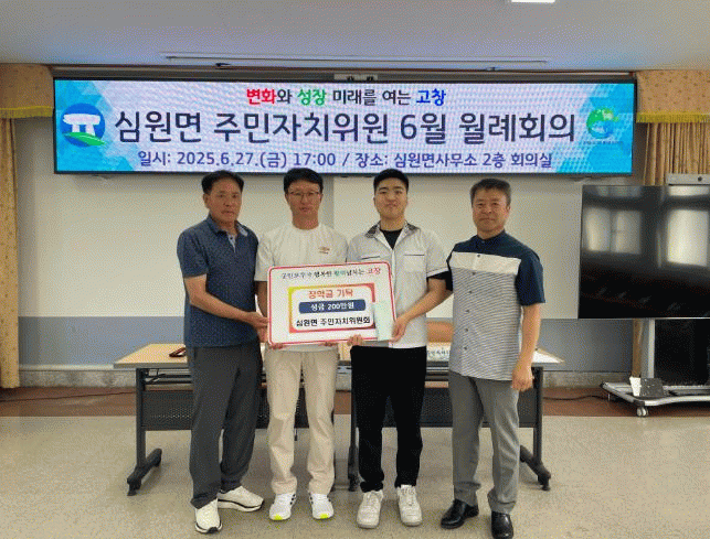 방준형 심원면장은 “김동한 학생이 이번 지원을 통해 더욱 큰 꿈을 키워가길 바라며, 앞으로도 심원면은 청소년들의 성장을 위해 지속적으로 지원하겠다.”라고 밝혔다.
