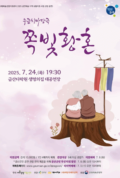 군 관계자는 “이번 공연은 전통 마당극의 흥겨움과 삶의 철학을 동시에 느낄 수 있는 무대가 될 것”이라며 “금산군민에게 먼저 예매 기회가 진행되는 점 참고해 주시길 바란다”고 말했다.
