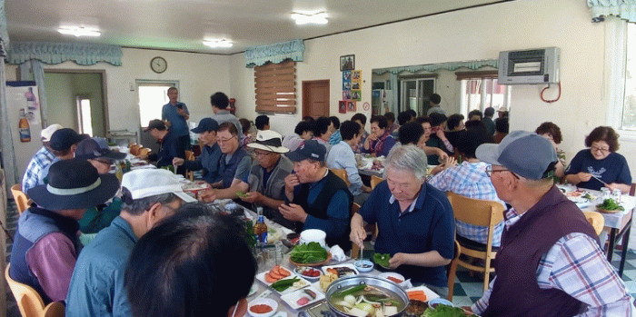 김 대표는 매년 1~2회 마을 어르신을 위한 음식 나눔을 실천하고 있으며, 지난달 30일에도 진두마을 어르신 40여 명을 초대해 여름 보양식인 갯장어 샤브샤브를 제공했다.