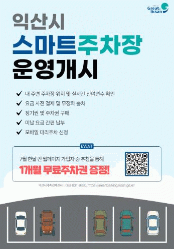 '익산시 스마트 주차 누리집' 또는 '카카오T 앱'을 통해 누구나 이용할 수 있다.