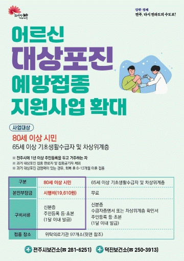 이번에 확대된 대상자는 80세 이상(1945년 12월 31일 이전 출생자) 전주시민으로, 전주시에 1년 이상 거주한 자가 해당된다.