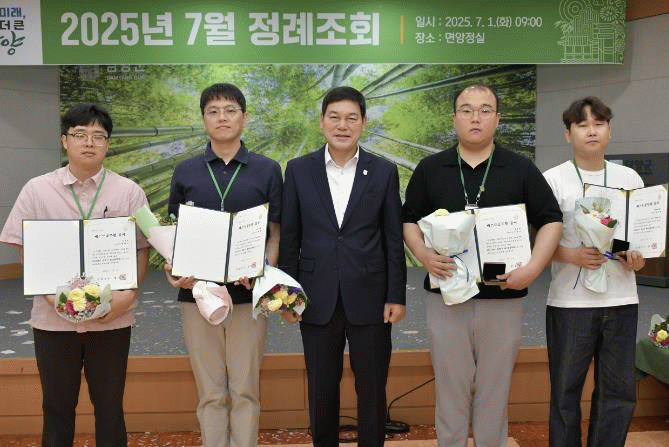 이날 조회에서는 ▲2025년 상반기 베스트공무원 증서 수여 ▲민원 처리 단축 마일리지제 평가 우수자 시상 ▲국민신문고 민원처리 우수 부서 표창 등이 이어졌다.