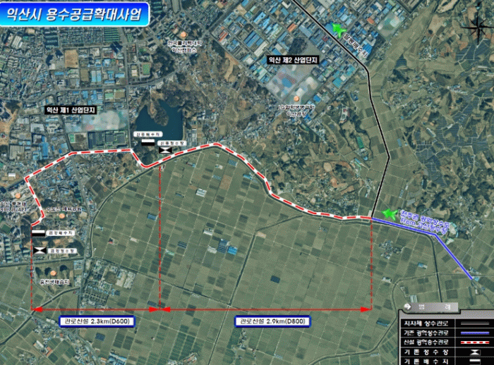 앞서 익산시와 협약을 체결한 한국수자원공사(K-water)는 올해부터 내년까지 총 180억 원을 투입해 △춘포분기점~신흥배수지(지름 800㎜, 2.9㎞) △신흥배수지~금강배수지(지름 600㎜, 2.3㎞) 구간에 송수관로를 설치한다.