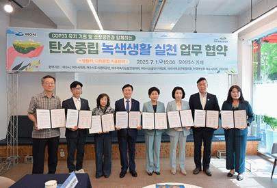 협약에 따라 참여 기관은 ▲제33차 유엔기후변화협약 당사국총회(COP33) 유치 및 2026여수세계섬박람회 홍보 ▲개인 텀블러 사용을 통한 탄소중립 실천 확산 ▲지역 소상공인(카페)과의 상생 문화 정착 등에 적극 협력한다.