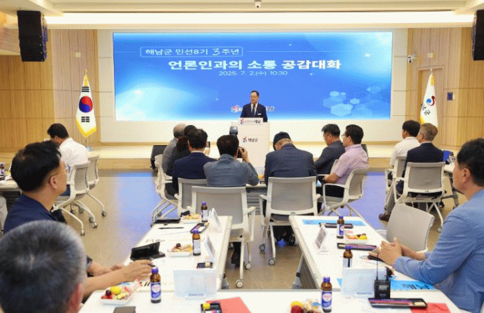 해남군은 2일 군청 대회의실에서 민선8기 3주년 언론인 간담회를 갖고, 지난 민선7~8기 7년의 성과를 돌아보고, 앞으로 군정발전 방향과 비전을 설명하는 대화의 시간을 가졌다.