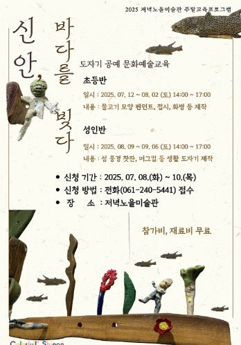 한편, 프로그램 강사는 무안에서 활동하는 박일정 작가로, 바다와 섬, 영산강 등 자연 생태를 바탕으로 동화적 상상력을 담은 도자 작업을 이어오고 있다.