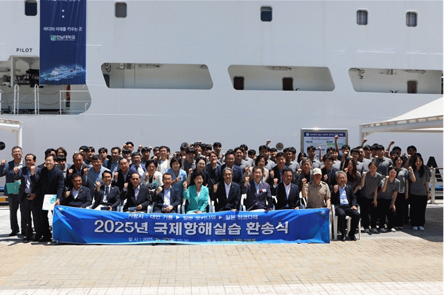 이날 출항식에는 이근배 총장을 비롯해 백인숙 여수시의회 의장과 시의원들, 이광일 전남도의회 부의장, 주종섭 도의원, 서호영 수산해양대학장 등이 참석해 실습단의 항해를 격려하고 환송했다.