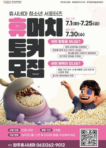 활동 및 모집에 관한 자세한 사항은 완주문화재단 홈페이지 및 완주휴시네마 인스타그램 계정을 통해 확인할 수 있으며, 지원은 네이버 폼 을 통한 이메일 접수 방식으로 진행된다.