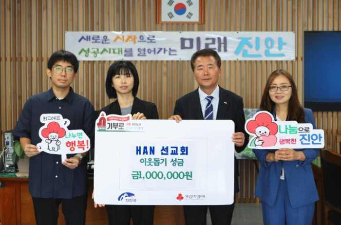 HAN 선교회는 지난해부터 진안군에 꾸준히 이웃사랑을 실천해오고 있으며, 앞으로도 매년 200만원의 성금을 이웃돕기 성금으로 기탁하기로 해 지역사회 나눔의 본보기가 되고 있다.