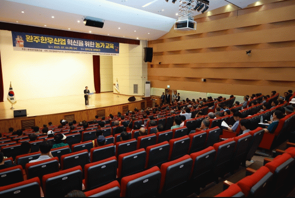 3일 완주군과 완주한우협동조합이 주관하고, 완주한우협회·화산한우영농조합·전주김제완주축협이 주최한 ‘제1회 완주 한우농가 교육’이 완주군청 문예회관에서 열렸다.