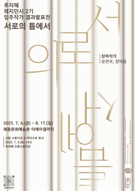 한편, 입주작가 신작의 창작 배경과 의미를 나누는 오픈 스튜디오·아티스트 토크가 오는 5일 토요일 오후 2시에 추자혜에서 마련된다.