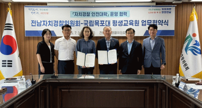 업무협약은 3일 전남자치경찰위원회 회의실에서 진행됐고, 정순관 전남자치경찰위원장, 조은정 국립목포대 평생교육원장 등이 참석했다.