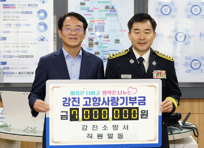 강진소방서 직원 68명이 강진 고향사랑기부제의 활성화를 응원하며 무더위 속 어려운 이웃을 위한 기부에 동참해 감동적인 소식을 전했다.