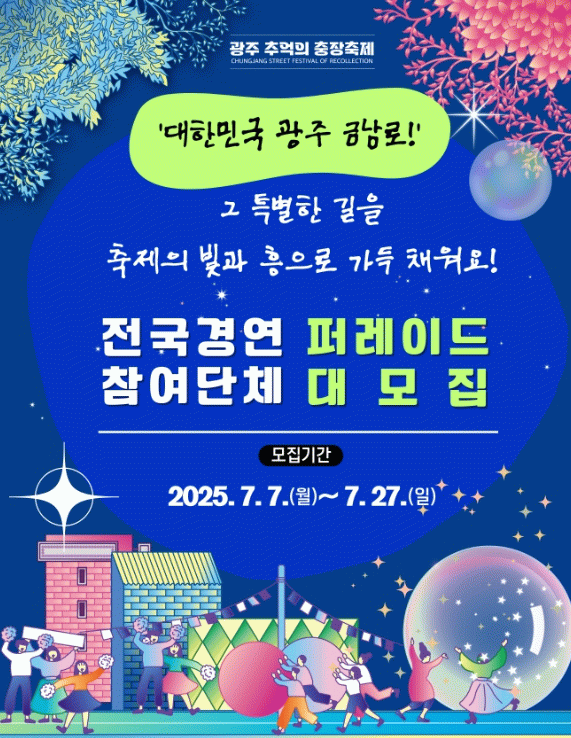 제22회 충장축제의 하이라이트 중 하나인 ‘추억의 동화 대행진’ 전국 경연 퍼레이드에 참가할 개인과 단체를 모집한다.