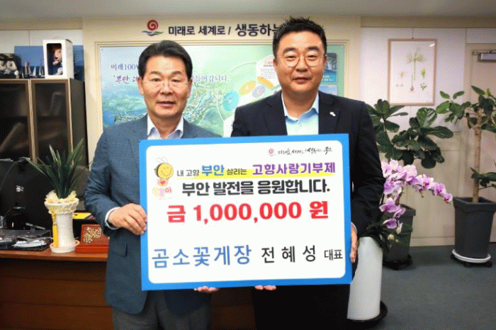 권익현 부안군수는 “지역을 사랑하는 마음으로 기부해 주신 전혜성 대표님께 깊이 감사드린다”며 “앞으로도 기부금이 주민들에게 실질적인 혜택으로 돌아가도록 하고, 군민과 함께 만들어가는 성숙한 기부문화가 정착될 수 있도록 최선을 다하겠다”고 밝혔다.