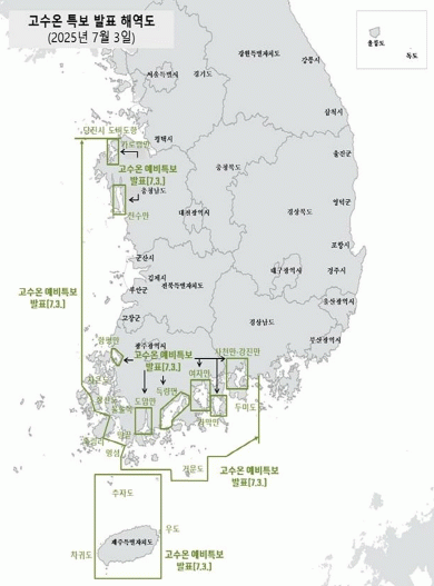 시 관계자는 “고수온 피해가 최소화되도록 선제적으로 총력 대응하겠다”며 “어업인들께서도 대응 장비를 가동해 사료 공급을 중단하고 조기 출하하는 등 피해 예방에 동참해 주시길 바란다”고 말했다.