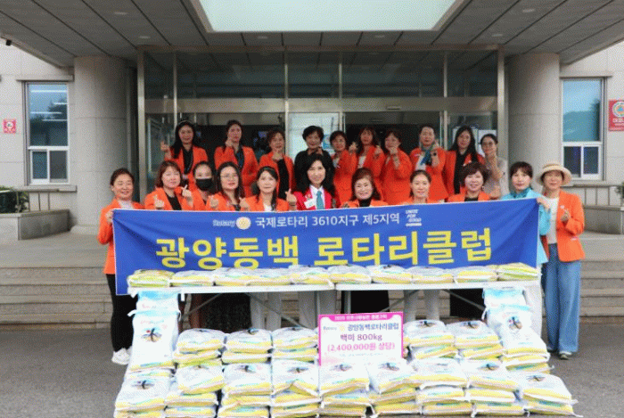 한편 광양동백로타리클럽은 취약계층 아동 가구를 위한 집수리, 돋보기 안경 및 백미 후원, 반찬 배달, 안심가로등 설치, 환경 정화 활동 등 다양한 봉사와 나눔 활동을 통해 지역복지 향상과 따뜻한 공동체 문화 조성에 기여하고 있다.