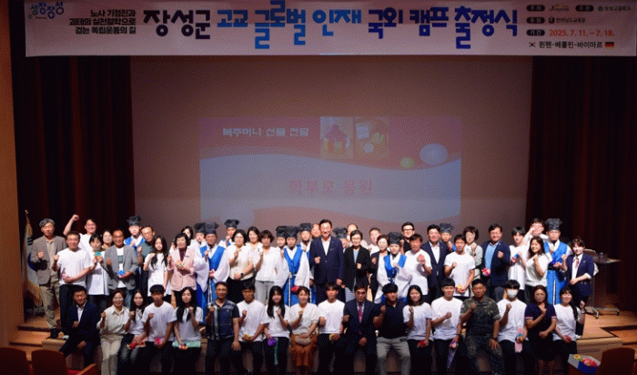 ‘고교 글로벌 인재캠프’는 교육발전특구 시범사업 및 광복 80주년 기념 프로젝트의 일환으로 추진되는 행사다. 장성군과 전라남도교육청이 공동 주최하고, 장성고등학교를 거점으로 지역 내 4개 고교 학생들이 참여한다.