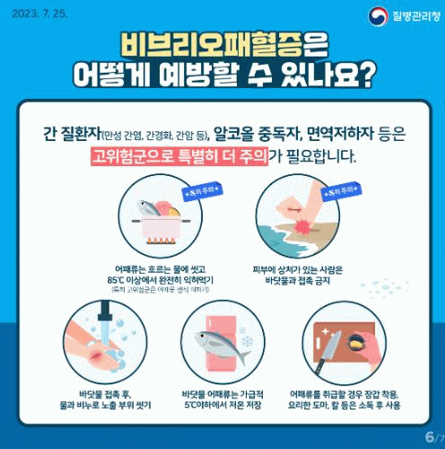 보건소 관계자는 “비브리오패혈증 감염 예방을 위해 어패류는 충분히 익혀 먹고, 피부에 상처가 있는 사람은 바닷물과 접촉을 피하고 바닷물에 접촉 시 깨끗한 물과 비누로 노출 부위를 씻는 등 예방수칙을 준수해야 한다.”라고 당부했다.