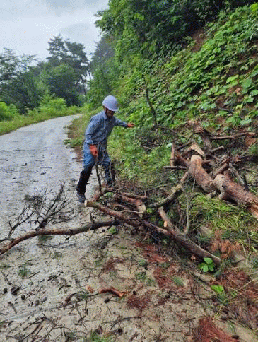 여름철 산림피해 사전예방 사업으로 임도 배수로 및 노면 정리, 쓰러진 나무 제거 등을 진행하고 있다.