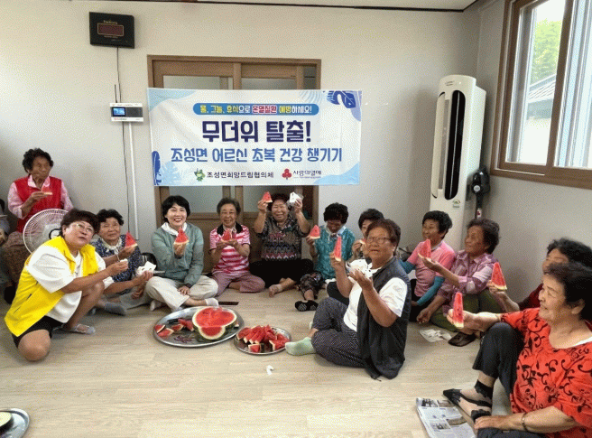 조성면 관내 경로당 47개소를 대상으로 백설기, 수박 등 여름철 간식을 전달하고, 무더위 속 건강을 지킬 수 있도록 폭염 대비 행동 요령과 주의사항도 함께 안내하고 있다.