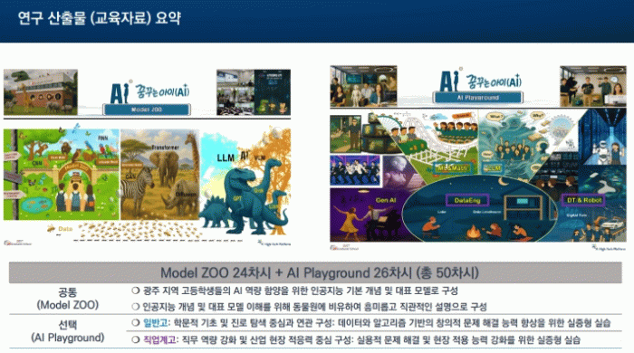 교육자료는 공통(Model ZOO) 24차시, 선택(AI Playground) 26차시 등 총 50차시로 구성됐으며, 학생들이 인공지능에 대해 이해하고 직무역량 강화를 통해 관련 진로를 탐색할 수 있도록 지원한다.