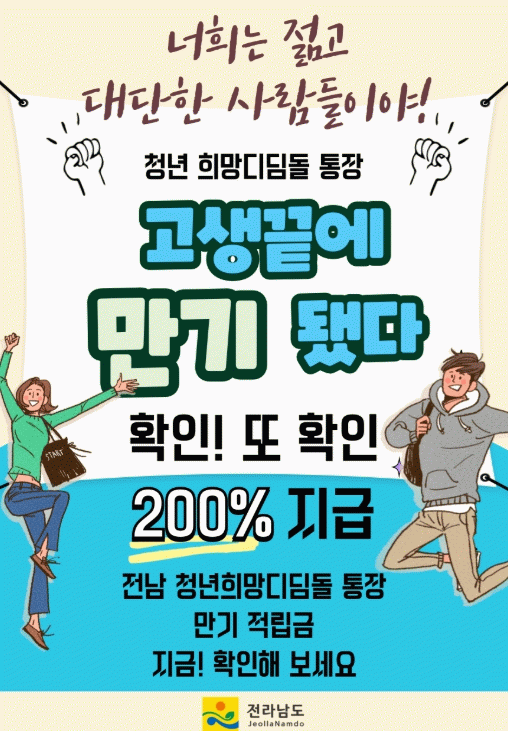 윤연화 전남도 인구청년이민국장은 “청년 희망디딤돌 통장이 청년의 경제적 자립과 미래 설계의 든든한 디딤돌이 되길 바란다”며 “앞으로도 청년이 지역에 정착해 일하고 꿈을 실현하도록 맞춤형 청년 지원 정책을 지속해서 확대·강화하겠다”고 말했다.