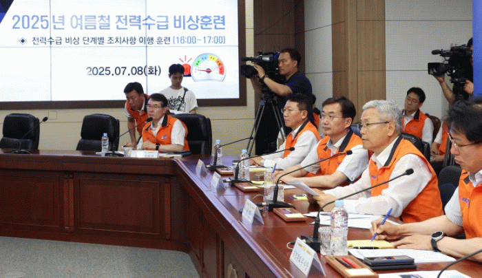 한전은 7월 8일 본사 재난종합상황실(전남 나주 소재)에서 전국 15개 지역본부가 동시에 참여하는 『전력수급 비상훈련』을 실시했다. 이번 훈련은 국내와 미주 유럽을 달군 열돔현상과 태풍 북상, 흐린 날씨로 인한 태양광 발전 저하 등 실시간 기상 데이터를 반영한 가상 시나리오를 바탕으로 구성됐다.