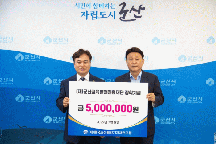 이번 기탁은 군산시를 방문한 (재)한국조선해양기자재연구원 중소형미래선박본부(원장 배정철, 본부장 조민호)가 지역인재 육성에 대한 뜻깊은 마음을 교환하면서 이뤄졌다.