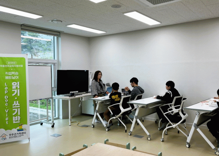 6월 28일에 개강한 ‘베트남어’ 유아반은 무주군 거주 베트남어 사용 미취학 자녀 5명을 대상으로 하며 오는 10월 11일까지 매주 수요일과 토요일 2시간씩 총 27회기로 진행된다. 4월 3일에 시작된 초급반(매주 화, 목요일 총 27회기, 회기당 2시간)은 7월 10일 마무리된다.