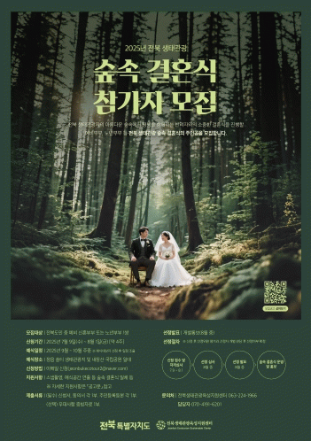 한순옥 전북자치도 탄소중립정책과장은 “숲속 결혼식은 단순한 예식이 아닌, 전북 생태관광의 가치를 널리 알릴 수 있는 기회”라며 “뜻깊은 순간을 자연과 함께할 수 있도록 많은 예비 부부들의 관심과 참여를 바란다”고 말했다.