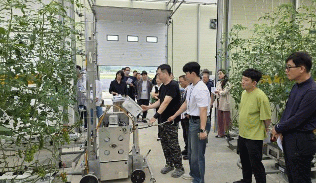 이번에 도입된 시스템은 연동온실 내 레일을 따라 자동으로 주행하며, 상하로 진동하는 방식으로 약제를 고르게 살포한다. 기존의 수작업 중심 방제 방식보다 약제 부착력과 작물 품질이 향상되고, 살포량 절감을 통한 경영비 절감 효과도 크다는 평가다.