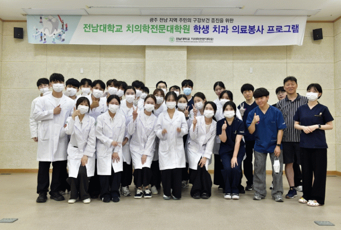 고서면 문예회관에서 이뤄진 이날 봉사에는 전남대 치전원생 40여 명이 참여해 고서면 어르신과 주민 40여 명에게 스케일링(치석 제거), 구강검진, 레진 충전, 의치 세척 및 관리 교육 등 다양한 치과 진료 서비스를 제공했다.