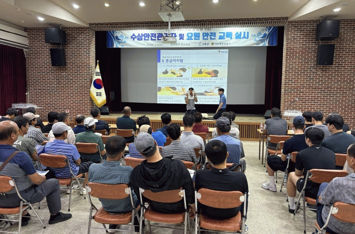 이날 교육에는 여수해양경찰서 해양안전과 김호정 순경, 녹동파출소 김지문 경사를 초빙해 ▲해수욕장 예방·순찰 활동 ▲인명구조 장비 사용법 ▲심폐소생술 및 응급처치 요령 등 실무 중심의 사고 예방 교육을 진행했다. 또한, 해수욕장에서 실제 발생한 다양한 안전사고 사례를 중심으로 한 이론 교육도 병행해 돌발상황 발생 시 즉각 대응할 수 있도록 실효성을 높였다.