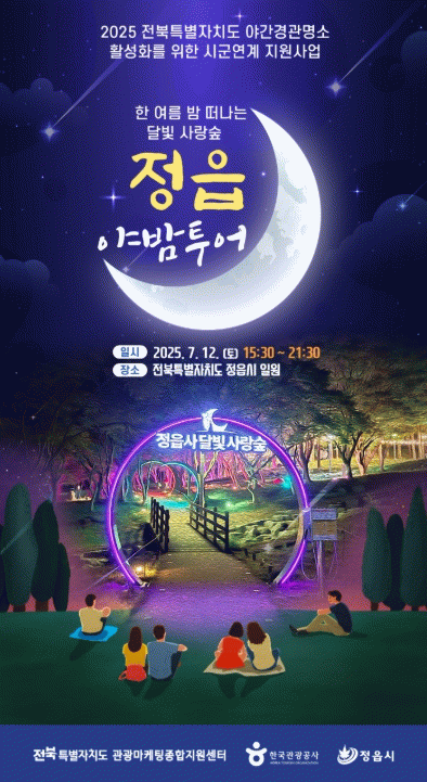 시는 오는 12일, ‘한여름밤 떠나는 달빛 사랑숲 정읍 야(夜) 밤 투어’를 개최한다고 10일 밝혔다.