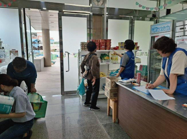 주민과 단체의 자발적인 기부로 매주 화요일, 월 1회 정기적으로 운영되고 있으며 백미, 떡, 밀가루 등 식료품과 세제, 화장지, 물티슈 등 생필품을 지원하고 있다.