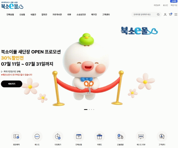 북구는 ‘북소e몰’의 새 단장을 기념하고자 오는 11일부터 이달 말까지 쇼핑몰에서 판매 중인 모든 상품을 30% 할인된 가격(최대 1만 원)으로 판매하는 이벤트를 진행한다.
