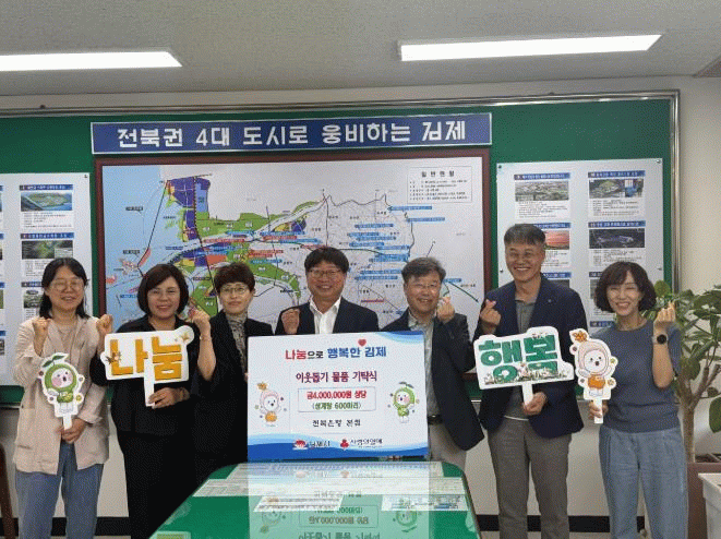 이번 기탁식에는 전북은행 김제지점 김범식 지점장, 김선화 부행장, 강장오 리스크관리부장, 이금자 여신감리부장, 임진아 신용분석실장, 허경아 데이터분석부장 등 은행 주요 관계자들이 참석했다.