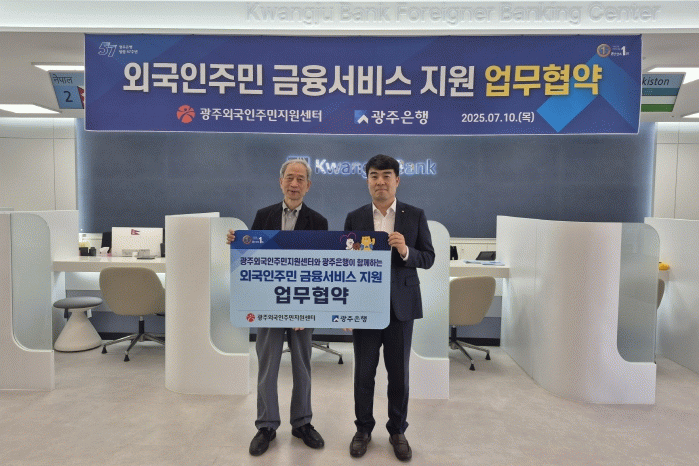광주외국인주민지원센터는 10일 광주은행 외국인금융센터와 ‘외국인 주민 금융서비스 지원 업무협약(MOU)’을 체결했다고 밝혔다.