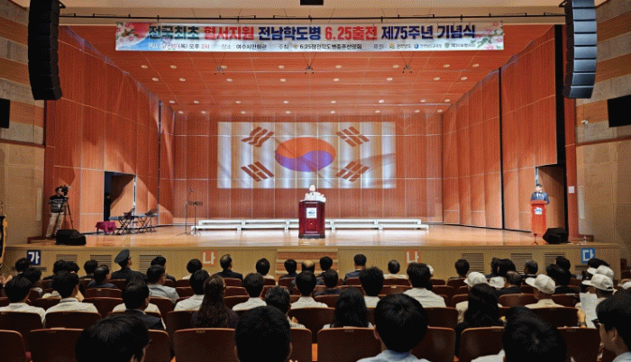 기념식의 마지막은 학도병 참전 규모가 가장 컸던 여수고등학교의 김연경 교장이 무대에 올라 “조국을 위해 헌신한 학도병들을 기억하자”는 외침과 함께 만세삼창으로 행사를 마무리했다.